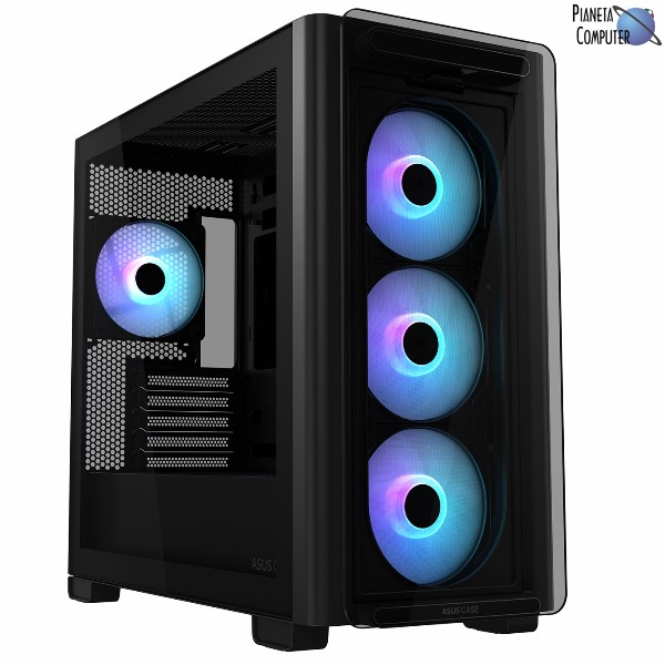 Il case ASUS A23 PLUS è un case micro-ATX compatibile con schede madri Micro-ATX e Mini-ITX, supporta schede madri con connettori nascosti per una gestione ottimale dei cavi, ed è progettato per configurazioni moderne e potenti. Le dimensioni complessive sono di 479 x 220 x 450 mm con un peso di 8.9 kg, offrendo uno spazio interno che permette l’installazione di schede grafiche fino a 380 mm di lunghezza, dissipatori ad aria per CPU con un’altezza massima di 165 mm e unità PSU con una lunghezza massima di 210 mm. Il case dispone di un alloggiamento da 2.5″ e due combo bay da 2.5″/3.5″, con cinque slot di espansione per una configurazione versatile. Sul pannello I/O frontale sono presenti una porta cuffia, una porta microfono, due porte USB 3.2 Gen1 e una porta USB 3.2 Gen2 Type-C per connessioni ad alta velocità. Offre un eccellente supporto per il raffreddamento, consentendo l’installazione di radiatori fino a 360 mm sia nella parte frontale che superiore, con supporto aggiuntivo per radiatori da 120 mm nella parte posteriore. In termini di ventole, è possibile montare fino a tre ventole da 120 mm o due da 140 mm nella parte frontale, fino a tre ventole da 120 mm o due da 140 mm nella parte superiore e una ventola da 120 mm nella parte posteriore, con quattro ventole ARGB preinstallate che offrono un’illuminazione personalizzabile tramite ASUS AURA Sync. Il pannello frontale in vetro temperato con montaggio standoff permette una visione completa dell’interno e valorizza l’illuminazione delle ventole. L’organizzazione dei cavi è facilitata da un vano posteriore largo 33 mm che consente di mantenere l’interno ordinato e privo di ingombri, mentre il design moderno e funzionale è disponibile nelle opzioni di colore bianco e nero per adattarsi a ogni stile di configurazione.