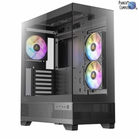 Il case MS-Y1000 di Sharkoon offre un mix perfetto tra design elegante e funzionalità avanzate. Con il suo pannello frontale in acciaio, non solo presenta un aspetto unico, ma garantisce anche un ottimo flusso d’aria per mantenere al fresco componenti di alta performance. Il vetro temperato sul pannello laterale può essere posizionato sia accanto al tunnel dell’alimentatore, situato nella parte superiore del case, sia nella parte inferiore, per esibire altri componenti in modo accattivante.Grazie ai suoi fori a Y, l’MS-Y1000 offre non solo uno stile d’impatto, ma anche un eccellente flusso d’aria. Questo assicura che l’aria fresca venga aspirata dalla parte anteriore o inferiore del case, mentre l’aria calda viene espulsa dalla parte superiore o posteriore. Nonostante le sue dimensioni compatte, è progettato per supportare hardware ad alte prestazioni.Per garantire un raffreddamento efficace, l’MS-Y1000 dispone di sei opzioni di installazione per le ventole. Una ventola PWM da 80 mm è già preinstallata sul pannello posteriore, accompagnata da una ventola PWM da 120 mm sul pannello inferiore e altre due sul pannello superiore. È inoltre possibile aggiungere un’ulteriore ventola da 120 mm sul pannello inferiore o dietro il pannello frontale. Inoltre, c’è spazio sotto il pannello superiore per un radiatore con un’altezza massima di 5,5 cm, ventole incluse.Nonostante le dimensioni apparentemente ridotte, l’MS-Y1000 offre spazio sufficiente per componenti di grandi dimensioni, come schede grafiche lunghe fino a 36 cm (o 33,5 cm se ci sono ventole dietro il pannello frontale). Può ospitare anche un alimentatore ATX standard lungo fino a 16 cm nella parte superiore del case.Grazie alle sue dimensioni compatte e al design accattivante, il case MS-Y1000 si adatta a qualsiasi ambiente. È perfetto per essere esposto sulla scrivania grazie al suo aspetto elegante e al pannello laterale in vetro temperato, che consente di mostrare l’hardware in modo spettacolare senza occupare troppo spazio.Inoltre, con il Compact Vertical Graphics Card Kit opzionale, è possibile installare verticalmente schede grafiche lunghe fino a 27 cm, consentendo di esporre in modo ancora più efficace la scheda e mettendo in risalto le parti illuminate dietro il pannello laterale in vetro.